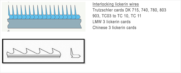 Licker-in wire profiles are designed to open the tufts gently and the hardened tips will withstand heavy loads during the penetration of tips into the fibre tufts. Based on the applications UNISTAR, UNICHROME, UNICARB steel is recommended.
